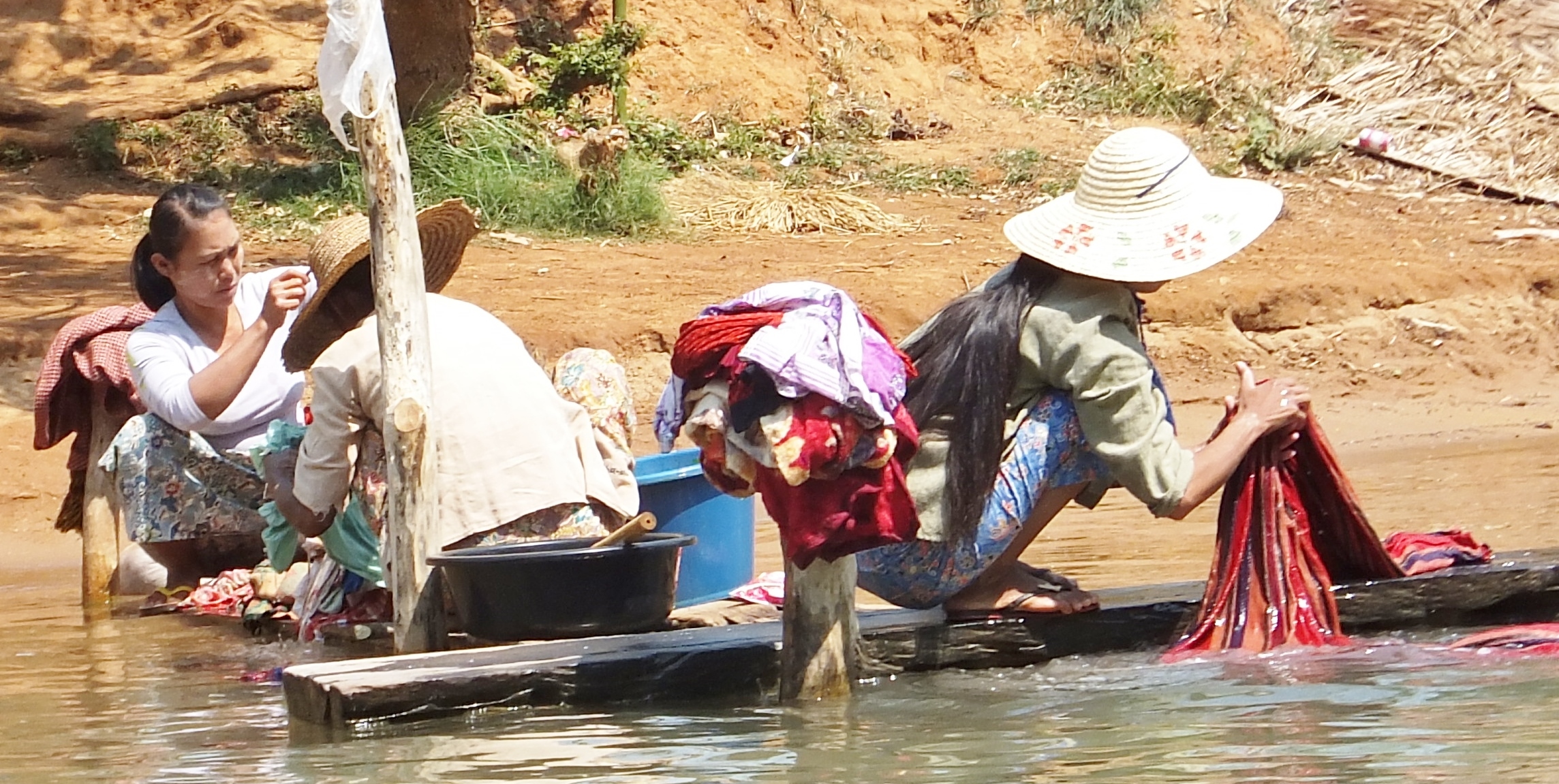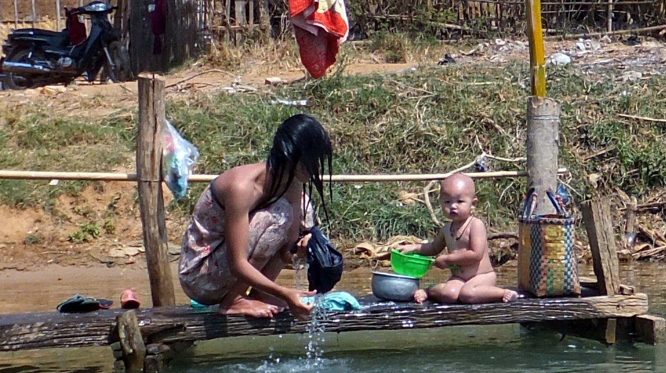 We continued on our journey to Indein village, where there is a collection of restored and ruined stupas begun in the 12th century and added to by Shan princes up until the 18th century. The small creek took us away from the lake past sights not changed for hundreds of years…women bathing their babies, women washing clothes….life happens on the banks of the creek.