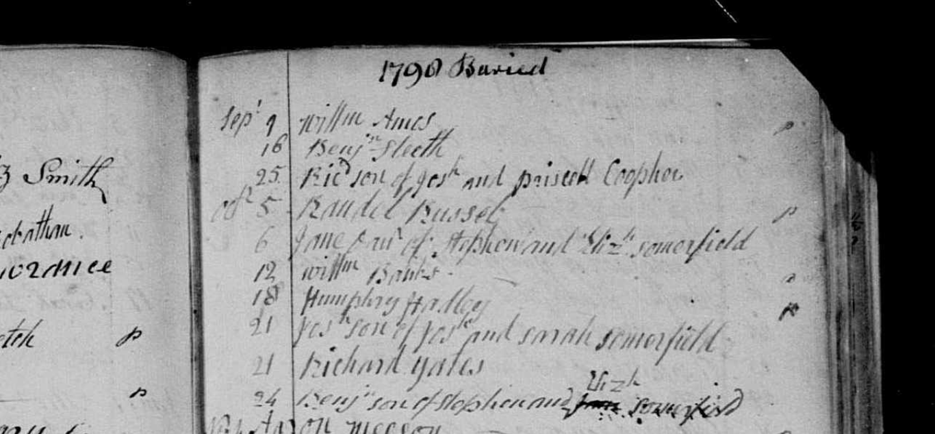 I also have Benjamin Sleeth’s burial in Bloxwich, Staffordshire at All Saint’s Parish Church on September 16, 1798 which was 45 years after his marriage. We could assume that, had he been born in 1713, he would have been 85 years of age and if born in 1735, he would have been 58 years of age. His wife Mary, had been buried 10 years earlier in 1788.