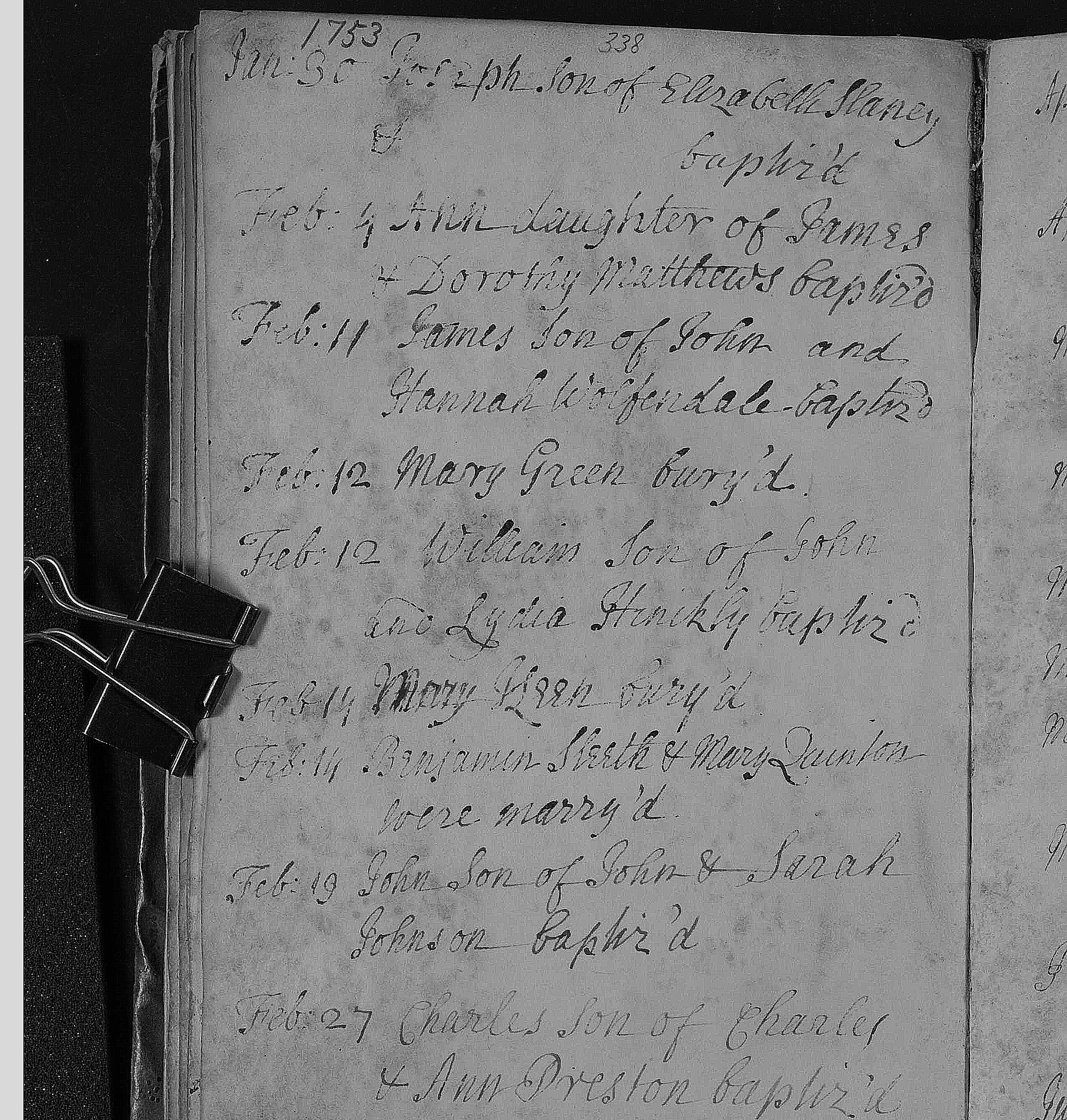 1753 Benjamin Sleeth and Mary Quinton marry in Abbots Bromley