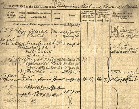 08Aug1891 - posted to Royal Horse Artillery Dublin District formed in 1793 as distinct arm of the Royal