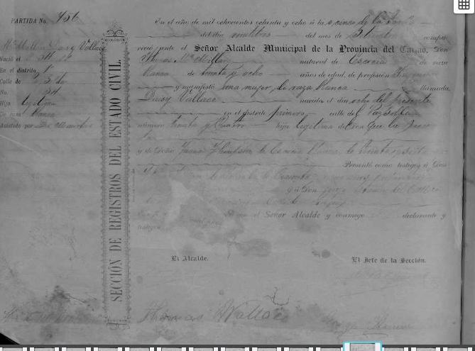 A fourth child was also born in Callao on November, 1888 . This was the woman I believed to be my aunt. Her name was Daisy Wallace McMillan.