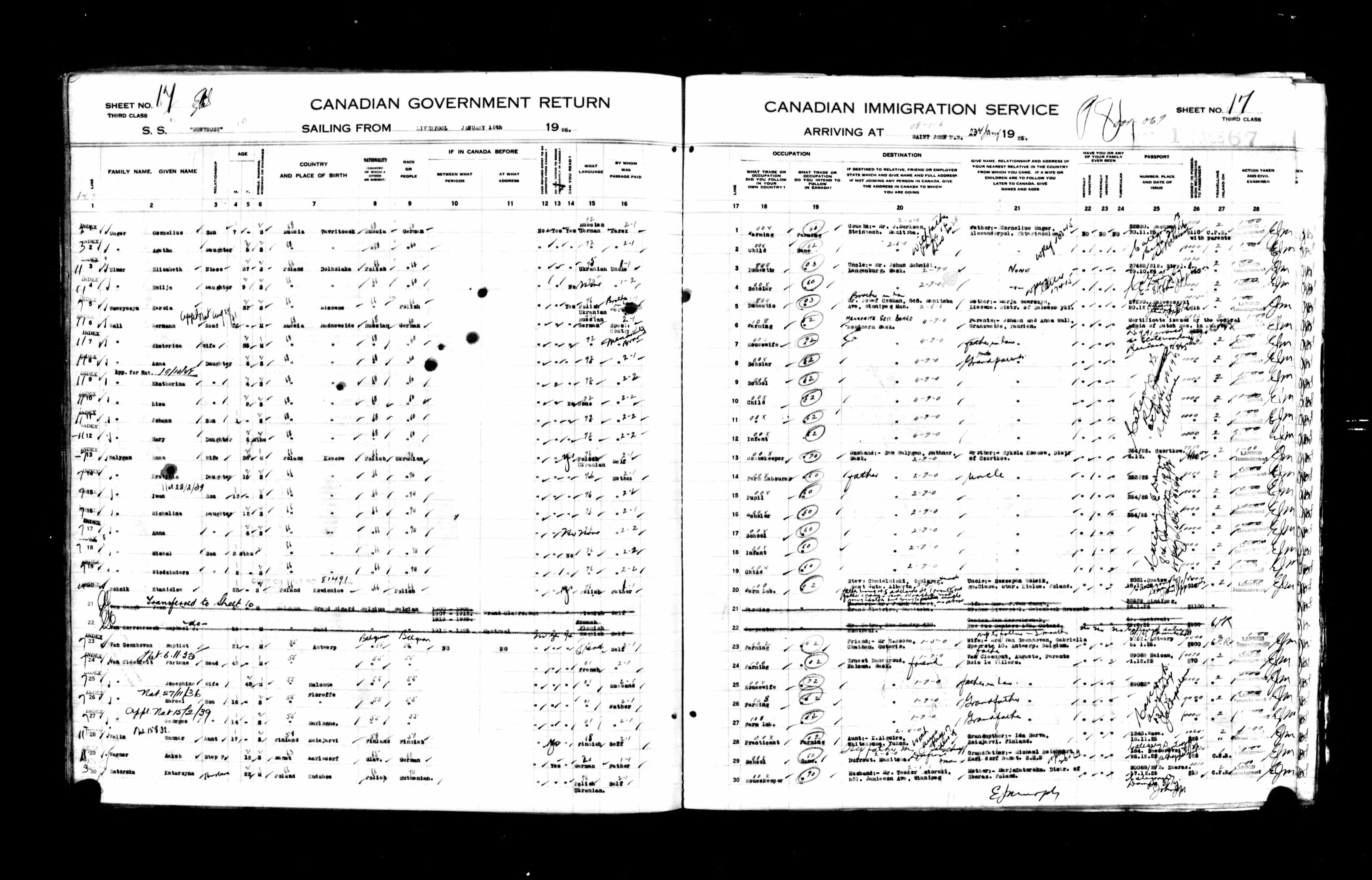 Hermann 36, Katherina 35, Anna 6, Katherina 4, Lisa 2, Johann 1+ and Mary 6 mo. Departed Liverpool England for St. John New Brunswick arriving 25Jan1926 ancestry.co.uk
